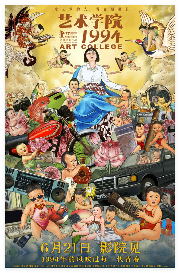 电影《艺术学院1994》由摩登太空领衔出品,动画艺术家刘健编剧并执导,董子健、白客、黄渤、仁科、Papi(姜逸磊)、周冬雨、卜冠今、许知远、彭磊、毕赣、王宏伟、沈黎晖、大鹏、王红卫、郑大圣、黄璐、贾樟柯、蔡康永、张子贤、陈廖宇、徐磊(按出场划定)全明星声势跨界汇注,以私有声息塑造时期群像。影片由爱奇艺影业(上海)有限公司、中国电影股份有限公司北京电影刊行分公司刊行,五洲电影刊行有限公司齐集刊行。6月21日影院见,影片预售已全面开启,敬请期待!
