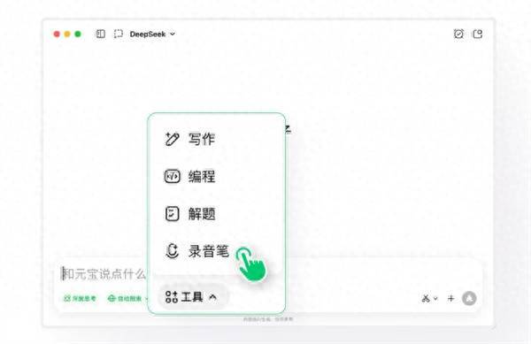 在操作启动方面,腾讯为用户提供了两种轻佻方法。用户大开电脑版元宝后,既不错在输入框下方的“用具”栏中径直聘请“灌音笔”来快速开启功能;也能在输入框中输入“@”记号,随后点击弹出的“灌音笔”选项,通常能飞快插足灌音情状。